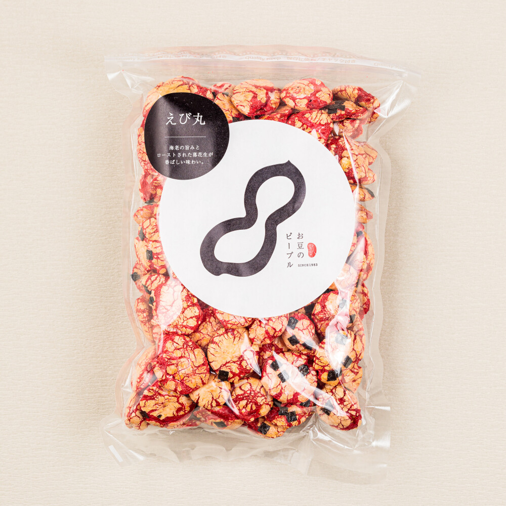 「えび丸」は、ころっとしていてえび粉の赤い彩りが目をひきます。UFOと同様に海鮮系のだしが香り、おかきのなかにはローストされた落花生が入っていて、香ばしさを感じる豆菓子です。 サクッとした食感のあとに、落花生のカリっとした軽い歯ごたえを楽しめます。まわりのおかきには醤油と砂糖がつかわれているため甘じょっぱく、口のなかにほのかなえびの香りが広がるのが特徴です。サイズ感も手頃で、お茶菓子やおつまみとして食べはじめると、次から次へと手が伸びてしまうほどよい大きさに仕上げています。