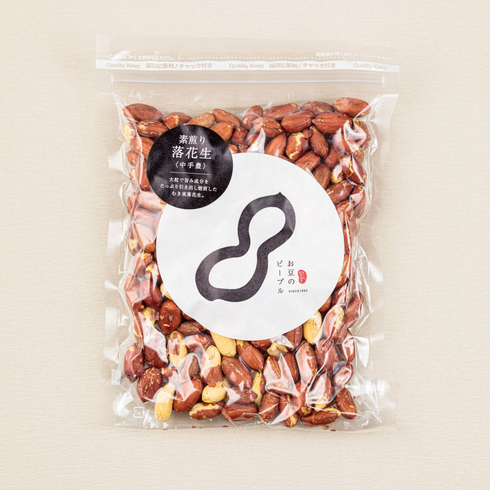 お豆のピープルでは素煎りの落花生を販売しており、秋は新豆を使用した旬の味を楽しめます。千葉県の広大な畑で育てられた落花生を、職人がひとつずつ手作業で丁寧に焙煎しています。電気焙煎という全国的にも珍しい手法で焙煎を行っており、お豆の水分量がほどよく残ったふっくらとした仕上がりになるのが最大の特徴です。カリッとした食感とのバランスを保つためには、焙煎時間や温度を調整できる熟練した技術が必要になります。当店では、経験豊富な職人の力により、良質でおいしいお豆の提供を実現できています。