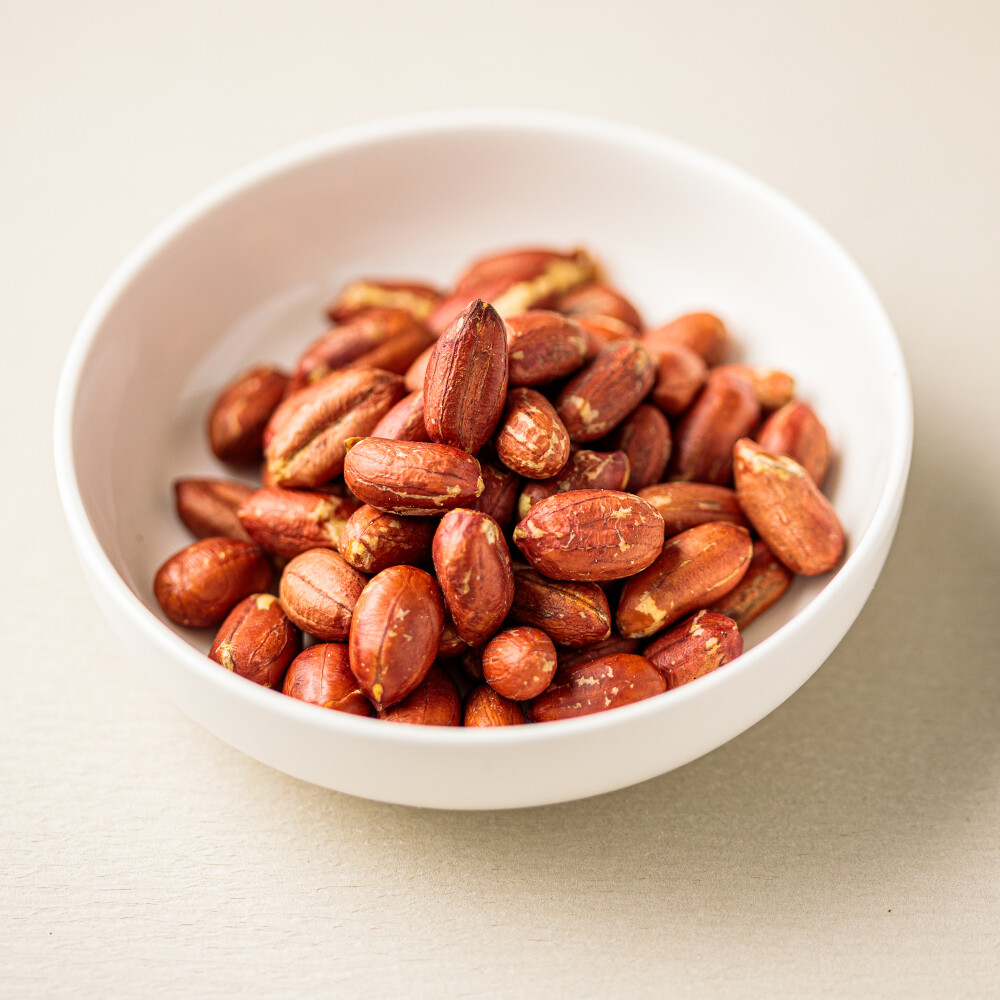 殻を取り除いた無添加の素煎り落花生は、そのまま食べるだけではなく、料理に使うのにも適しています。食べきれないときはピーナッツバターにするのもよいでしょう。その他炒め物へ加えたり、サラダにトッピングするなどの食べ方もおすすめです。茶色の渋皮付きのものは、ポリフェノールによる抗酸化作用も期待でき、健康志向の消費者にも喜ばれます。やわらかな食感を好む方には茹で落花生がおすすめ。塩茹でしたやわらかな歯応えと優しい塩味が特徴で、電子レンジ加熱してホクホクした食感を楽しめます。ただし、保存期間が煎り落花生より短い点に注意が必要で、開封後も日持ちしないため長期保存を優先する場合は冷凍商品を検討しましょう。焙煎方法も選択要素として重要です。塩や油を使用せず焙煎した商品は、落花生本来の風味をいかし、素材の味を楽しめます。料理の味を邪魔せず、さまざまなレシピにいかせます。